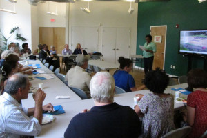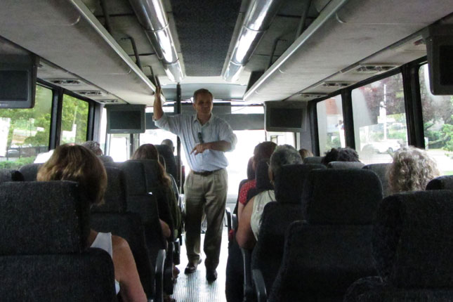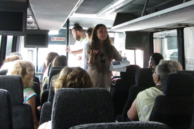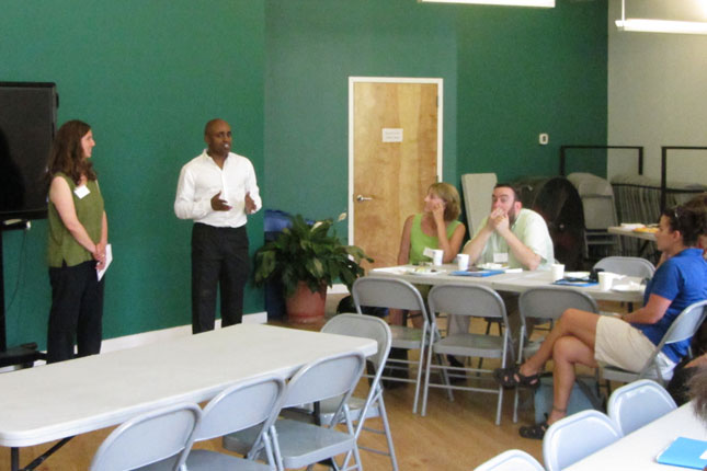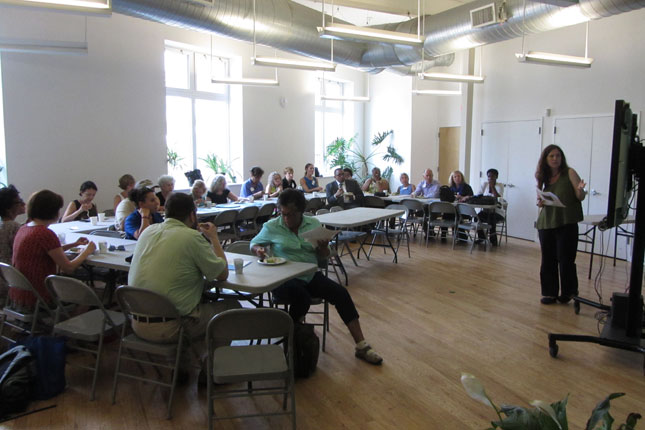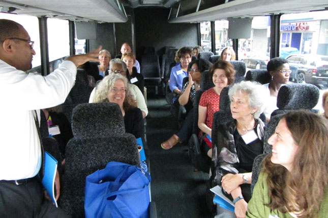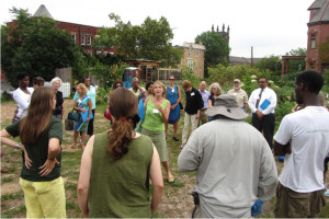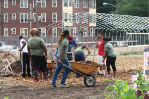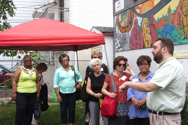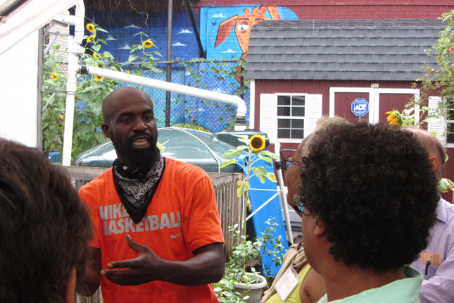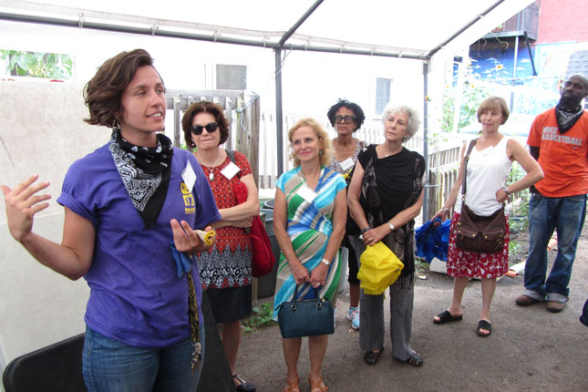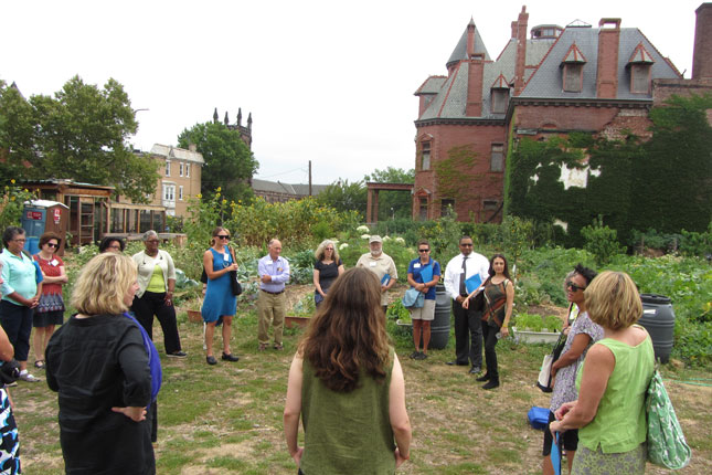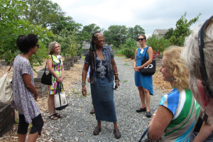 On July 30th, The Urban Agriculture Working Group of CFF partnered with the Council of New Jersey Grantmakers to host a day-long tour of urban agriculture sites in Newark, NJ. Twenty-five funders participated in the bus tour that began with a look at the urban farms of the Greater Newark Conservancy. We heard from staff and participants in their programs at both Court Street Farm and Hawthorne Healthy Harvest Farm. The two farms combined for over 65,000 pounds of food produced in 2014 which was distributed by youth at 12 farm stands around the city and to 50 members of their own Community Supported Agriculture (CSA) program. We then continued to the main facility of Greater Newark Conservancy for lunch and more presentations.