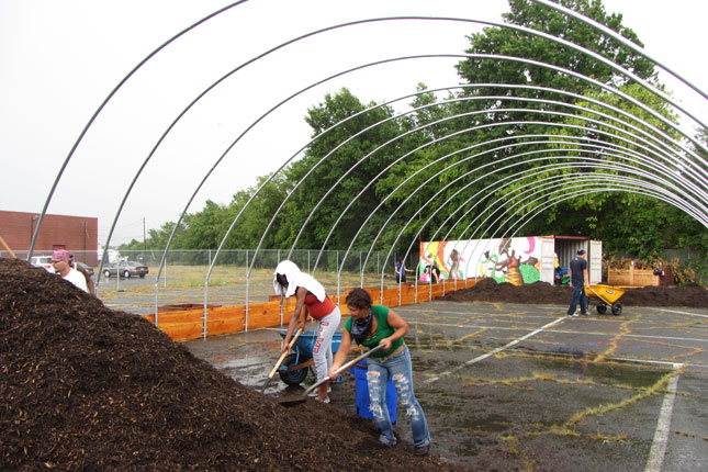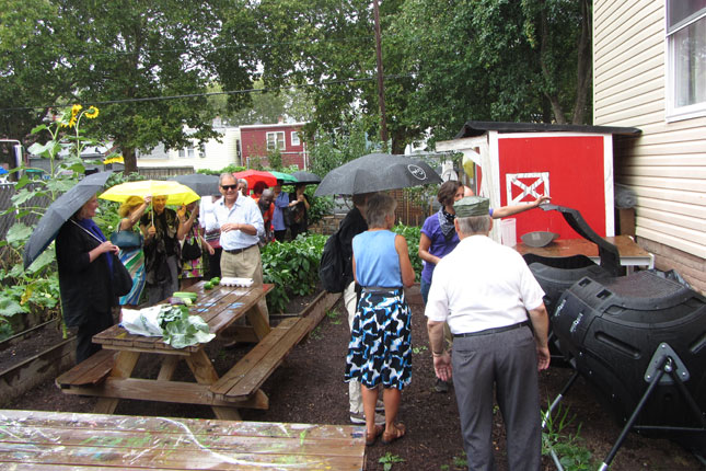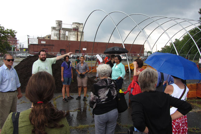 In the afternoon we visited Ironbound Community Corporation at their headquarters which includes a small garden and rainwater harvesting system, as well as a larger garden across the street. As the rain started to come down we made our way to a new site still being completed that will be a much larger urban farm run by Ironbound.