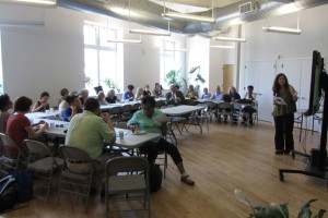To conclude the day we heard from a representative of AeroFarms, who is building their global headquarters across the street from the Ironbound farm in a facility that will also become be the world’s largest indoor vertical farm. AeroFarms, a for-profit company, grows herbs and greens aeroponically which uses 95% less water than conventional agriculture. They have partnered with Ironbound to do all of their local hiring for them, with 15 people already hired and 50 expected by the end of the year.