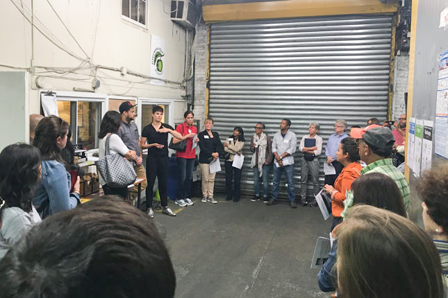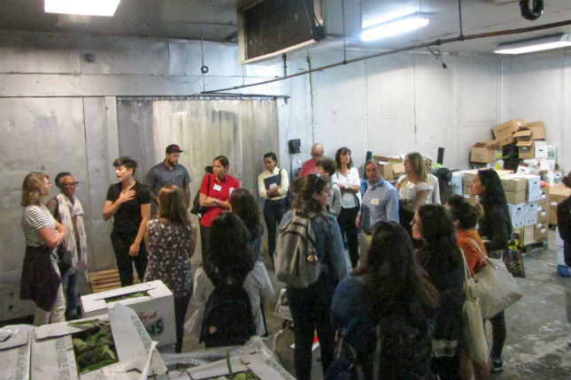 The day began at the 5,000sf warehouse of Greenmarket Co, the wholesale distribution arm of GrowNYC. We heard from Director of Wholesale Olivia Blanchflower and other staff about current operations, and learned that Greenmarket works with over 60 wholesale growers (88% are in New York) and over 400 buyers ranging from high end restaurants to bodegas. Since they moved operations to this Hunts Point location in 2015, they have grossed over $6M in sales of local farm products and distributed of 4M pounds of produce in low-income communities.