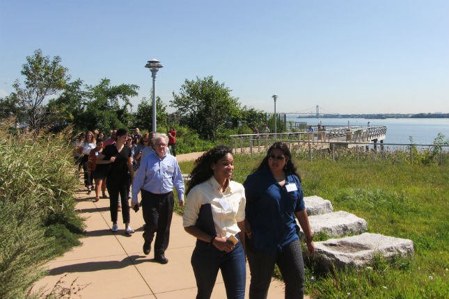 On September 13th, CFF and Philanthropy New York hosted a day-long Food Distribution and Infrastructure Tour to learn about some of the current and future food distribution systems utilized in NYC, as well as other infrastructure projects and small-scale supply chain models. Thirty-five funders attended the bus tour that included five stops and seven organizations working in the Hunts Point and Bronx River sections of the South Bronx.