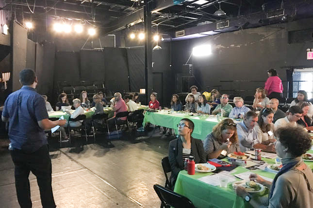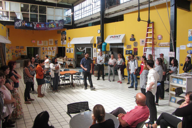 Our next stop was The Point CDC, where Executive Director Danny Peralta led us on a tour of the facility (and green roof!) and provided an overview of their arts and activism programming with a focus on youth development and food justice. During lunch prepared by Bascom Catering, we heard about additional projects we were not going to have time to visit: