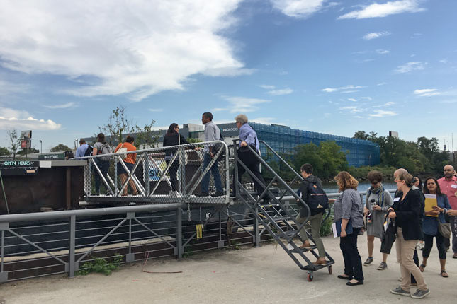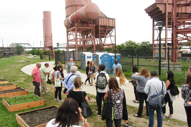 We got off the bus at Hunts Point Landing, a new public park in the middle of the FDC that is part of the larger South Bronx Greenway plan, to continue the conversation. Angela Tovar, Director of Community Development at The Point CDC, told us about the Hunts Point Resiliency project, an award-winning partnership that came out of HUD’s Rebuild By Design competition currently with $45M of funding.